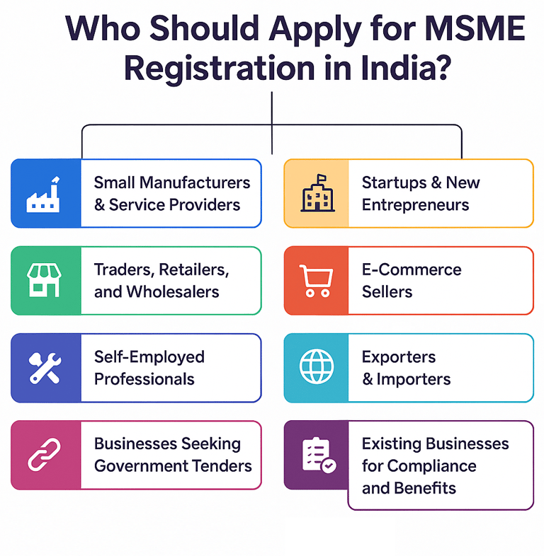 Micro, Small, and Medium Enterprises (MSMEs) are the backbone of India's economy. MSME registration, while not compulsory, provides a plethora of advantages β ranging from priority lending and tax incentives to government subsidies and protection under law. Here's who should definitely apply: