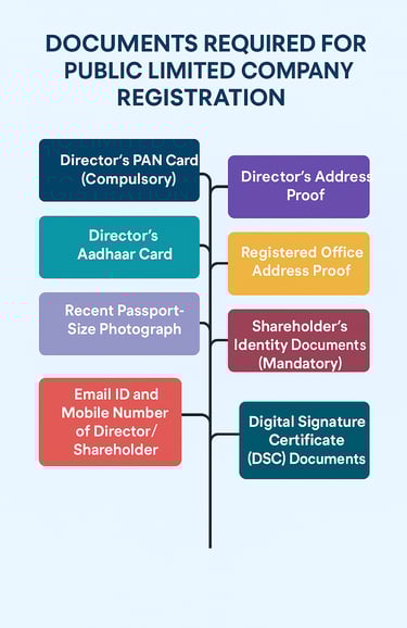 Public limited company registration involves the submission of various personal, residential, and business papers. Here is the exhaustive list with detailed explanation of each: